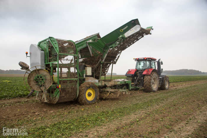 Les uns préfèreront arracher dans le sens de marche naturel d’un tracteur, d’autres en marche arrière. C’est le cas de l’entreprise Willemet qui officie depuis deux campagnes dans les Ardennes avec un Valtra N3 4 cylindres en poste inversé pour animer le bâti arracheur X-Beet six rangs de Franquet. Le débardage des betteraves effeuillées, scalpées, arrachées puis alignées par cet ensemble se fait ensuite par un Valtra série S3 tractant la X-Load S6, une machine d’une capacité de trémie de 6 m3. Le second ensemble qui a été présent lors d’une présentation dynamique est monté sur un Massey Ferguson 7720. Il emploie le même bâti arracheur sur le relevage avant mais se distingue par une version portée plus compacte de la chargeuse X-Load S1.