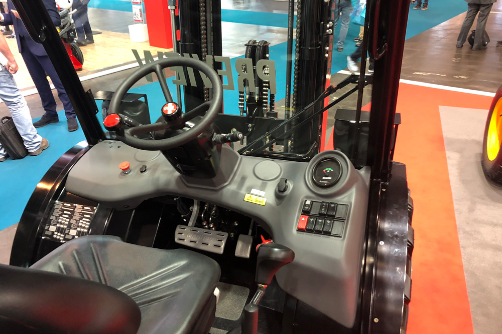 Facilement accessible malgré l’accroissement de sa garde au sol, le poste de conduite est fonctionnel et sécurisé par un toit vitré sans structure métallique, conforme avec les normes FOPS ISO 6055. Malgré l’absence de portes, la sonorité du Kubota de 36 chevaux accouplé à une transmission hydrostatique est contenue dans un capot « double-peau ». Manitou indique un niveau de nuisances sonores de 79 dBA, soit 7 dBA de moins que la moyenne du marché et une consommation limitée à 3,5 litres par heure. Par conséquent, Manitou communique un TCO (Coût Total de Possession) de 11,8€/heure pour une utilisation de 750 heures par an pour sa version quatre roues motrices.