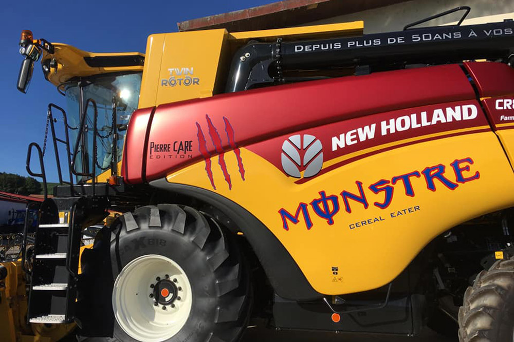 Séduits par l’idée, les Etablissements Cheval sont passés à l’action et ont fait appel à un spécialiste du covering automobile, la société Géo Design pour habiller une machine dédiée aux démonstrations durant la campagne à venir. Avec cette CR8.80, c’est un clin d’oeil aux 40 ans (et plus!) de la Twin Rotor mais également un bon moyen de marquer les 50 ans de la fondation de Cheval S.A par Pierre Caré, père de Florent Caré, l’actuel pdg de cette concession New Holland située dans les départements de la Meuse, de la Marne, de Haute Marne, des Vosges et de Meurthe et Moselle.