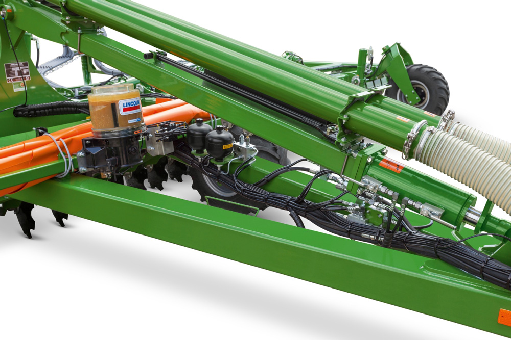 - Associé aux déchaumeurs à disques Catros+ TS et TX, une rampe d’éclateurs-diffuseurs, montée entre le rouleau et la rangée de disques arrière, permet d’épandre et d’incorporer des intercultures, engrais verts et CIPAN.