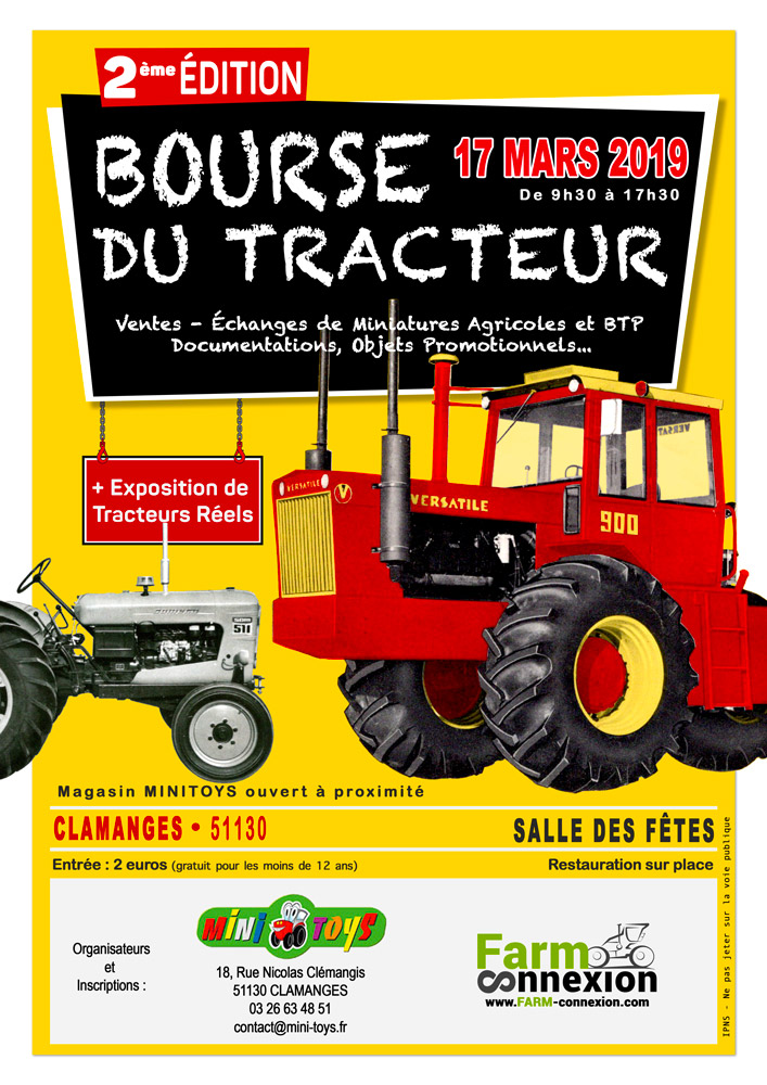 Pour la deuxième année consécutive, FARM-Connexion.com s’est joint à la boutique Minitoys pour organiser une Bourse d’Échanges dédiée aux passionnés de matériel agricole, BTP et de transport. Elle se tiendra le 17 mars à Clamanges, entre Chalons en Champagne et Fère Champenoise dans la Marne.