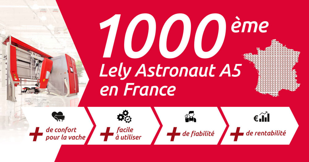 Moins d’un an après le lancement de son robot de traite Astronaut A5, Lely, le spécialiste de l’automatisation en élevage vient d’annoncer en avoir vendu 1.000, et ce rien qu’en France !