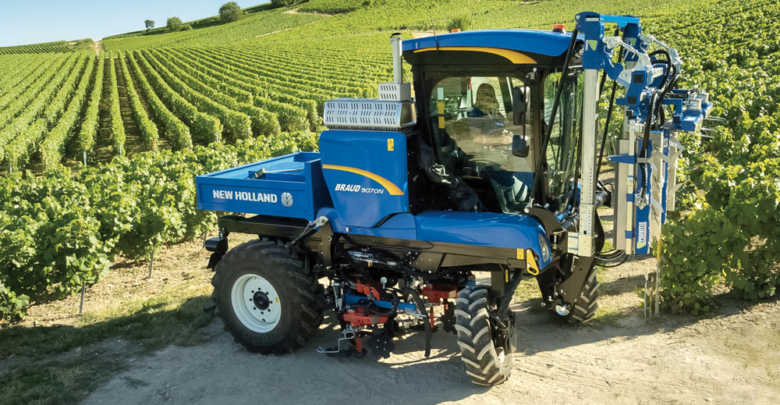 Le concessionnaire New Holland intègre les souhaits du client, et ses besoins en fonction de chaque outil. La possibilité de dupliquer les programmes d’une machine à l’autre, d’un concessionnaire à l’autre, assure l’homogénéité et la cohérence des solutions, lorsque des configurations identiques sont rencontrées. Le fonctionnement est paramétré directement dans l’Intelliview IV, les échanges sont directs entre les techniciens utilisateurs du système, concessionnaire et usine. L’intégration de l’outil, tout en un sur le moniteur et la poignée New Holland permettent de bénéficier de sécurités non négligeables en outils viticoles. L’exemple le plus significatif est concrétisé par la sécurité rogneuse, lorsque le chauffeur quitte son siège, la rogneuse s’arrête. Autre aspect de cette polyvalence à la demande client, le module de pilotage séquentiel des outils pour automatiser les tournières. Les outils entre roues d’un enjambeur par exemple, se relèvent au même endroit que les relèves traces. Jusqu’à 5 fonctions sont cumulables sur chaque bouton de la poignée et deux séquençages enregistrables : par exemple sortie de rang, entrée de rang. Cette solution globale de développement à la demande du client implique le distributeur dans la mise en œuvre d’un parc d’équipements adaptés, ayant des cycles de renouvellement diffèrent. Cela contribue à une réelle polyvalence de l’automoteur sans la contrainte d’acquérir tous les outils chez le même fournisseur ou chez ses partenaires privilégiés. Le confort de conduite existant sur l’automoteur (Terminal et joystick) est étendu à toutes les applications.