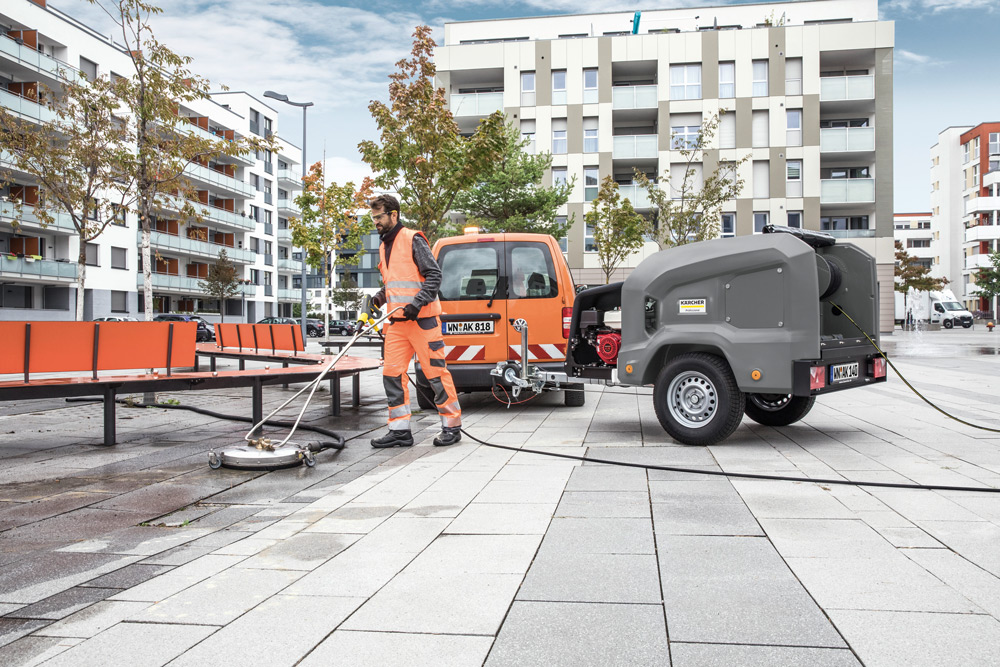 Avec sa nouvelle remorque haute pression à eau froide, Kärcher autorise un travail où que vous soyez.