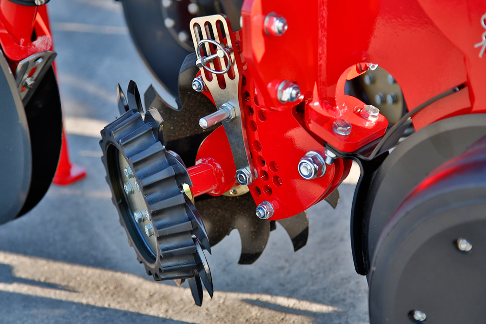 Les réglages du Maestro ont également été simplifiés au maximum ! Seule la quantité d’air arrivant sur le disque doit être réglée en fonction de la taille des graines. Ce réglage se fait directement depuis la cabine pour s’adapter aux informations de qualité de semis délivrées par le terminal. En option, le dispositif Horsch Connect offre un pilotage du semoir depuis le smartphone par liaison wifi, le terminal isobus dans le tracteur restant prioritaire. Le changement d’interrang devient quant à lui plus rapide grâce à un système de fixation par mâchoire sur la poutre.