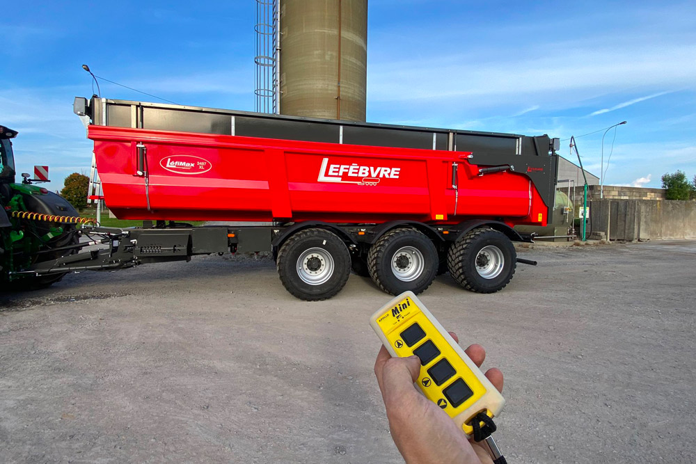 Pour assurer un comportement routier sûr, cette remorque profite d’essieux tridem à suspension pneumatique BPW avec essieu releveur avant hydraulique qui se relève automatiquement en fonction de la charge et limite par conséquent l’usure des pneus. Dans cet esprit, il est possible d’opter pour deux essieux suiveurs ou directionnels forcés. La flèche est également suspendue hydrauliquement et les essieux profitent de graisseurs déportés pour faciliter l’entretien. La Campagne opte pour des pneumatiques Nokian CT en 560/60R22.5 et a homologué ses remorques à 40 km/h. Plusieurs options sur disponibles comme le graissage centralisé, le bâchage latéral ou papillon avec deux volets articulés. L’utilisateur peut également commander le fond mouvant alterné à distance, depuis son chargeur télescopique par exemple grâce à une télécommande.