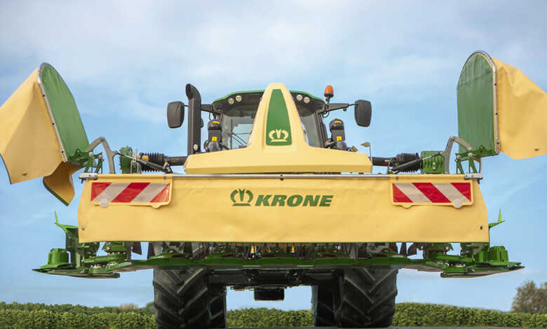 Cette machine 100% mécanique vient de recevoir un Innov’Space. Elle passe du mode champs au mode route en quelques secondes et sans descendre de la cabine, le tout dans un gabarit routier de 3 mètres et sans désynchronisation du lamier. Cette machine a été conçue pour augmenter les débit de travail et offrir un recroisement avec le groupe de fauche optimal pour maintenir une qualité de coupe parfaite même dans les courbes. Krone avance également comme argument la réduction des tassements de sols grâce à la réduction du nombre de passages.