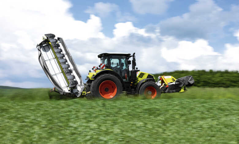 Avec la Disco 4400 Contour, Claas propose une faucheuse portée arrière de de 4,20 mètres dotée de la suspension Active Float et repliable à 120 degrés, pour s’effacer dans le gabarit du tracteur.