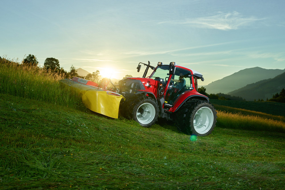 Les nouveaux Lintrac 80 et Lintrac 100 sont dotés de la transmission à variation continue LDrive (40 km/h) conçue en collaboration avec ZF et peuvent être équipés des quatre roues directrices, grande particularité de ce tracteur conçu non seulement pour les zones montagneuses mais également pour les polyculteurs. Leur 4 cylindres Perkins de 3,6 litres de cylindrée satisfait la norme antipollution Stage V grâce à un filtre à particules notamment. Il délivre 101 et 117 chevaux max. avec un couple max de respectivement 450 et 500 Nm atteint à 1.500 tr/min.