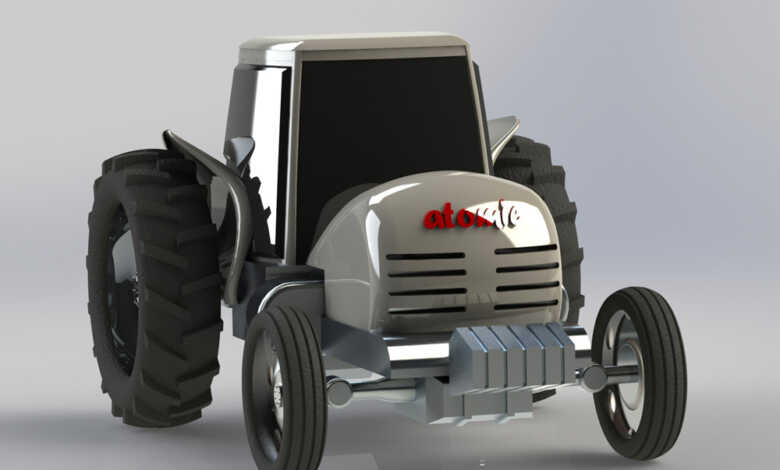 S’inspirer du « Petit gris », tracteur qui en 1946 rendit populaire le relevage hydraulique trois points inventé par Harry Ferguson n’a rien de bien surprenant lorsque l’on connait Campbell Scott, un ancien de chez AGCO, ex-Directeur Développement de la marque Massey Ferguson. Symbole de de la modernisation de l’agriculture après guerre, ce symbole mécanique continue de susciter de l’intérêt autant auprès des passionnés que des designers. Et son style minimaliste colle bien à la mission à laquelle s’est donnée AtomicTractor, qui planche depuis quelques temps sur une solution « zéro émission » pour les tracteurs agricoles conventionnels. Il a achevé une étude de faisabilité avec l’Université Aston de Birmingham, au Royaume-Uni.