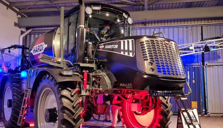 C’est en Australie que Hardi trouve le plus bel écho pour son appareil, positionné en dessous du colossal Rubicon, un appareil de 9.000 litres développé à l’origine par Matrot, et qui s’en distingue par sa rampe avant. D’ailleurs, le niveau d’intérêt accordé à l’annonce de cette édition Mallee du Saritor 7000 (et du Commander traîné de 10.000 litres) a stimulé plus de 100 concessionnaires et clients à faire le déplacement vers le siège social de Hardi Australie à Adélaïde SA pour le découvrir. Tout de noir vêtu, le Saritor 7000 de nouvelle génération est conçu à Adélaïde spécialement pour les producteurs locaux. Transmission hydrostatique Sauer Danfoss, moteur Cummins 6 cylindres de 6,7 litres et 300 chevaux, rampes de 36 à 48,5 mètres, pompe centrifuge ACE Run Dry 650 l/min, pilotage Isobus avec console Topcon X35, garde au sol minimale de 1,45 et voie de 3 à 3,5 mètres. Tout y est!