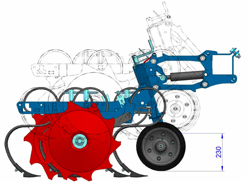 Pour un guidage précis dans le temps et des jeux latéraux réduits, le vendéen a opté pour des bagues Dry-Tech à lubrification intégré pour ses articulations de parallélogrammes. L’entretien est ainsi minimisé. La partie arrière, qui reçoit les dents, est modulable afin de faciliter la modification de la configuration de la bineuse en fonction de la culture. Les réglages des dents par manivelle sont rapides et sans outils.