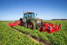 Sa construction est simple mais robuste avec un châssis trainé qui repose sur deux roues de transport (550/45R22.5) et de jauge disposées de part et d’autre des rotors de l’aligneuse. Animée hydrauliquement, celle-ci présente une largeur de travail de 7,88 mètres. Elle s’arme de deux rotors composés de dents plates interchangeables et disposées en biais, qui viennent griffer le sol sur 5 cm max. afin de réaliser un andain étroit, pour alimenter le broyeur de 3,5 mètres. Celui-ci requiert 200 chevaux et est animé par la prise de force. L’outil nécessite 3 distributeurs double effet (une fonction hydraulique par électrovanne est disponible pour le broyeur).