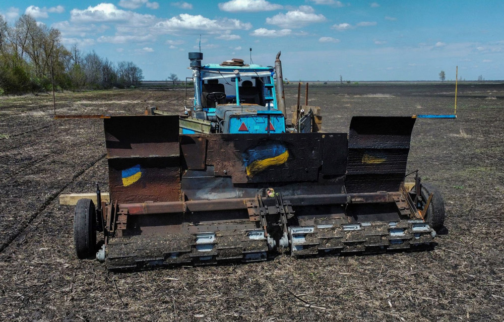Ukraine : Un agriculteur transforme son tracteur en démineur télécommandé