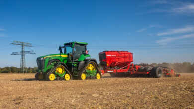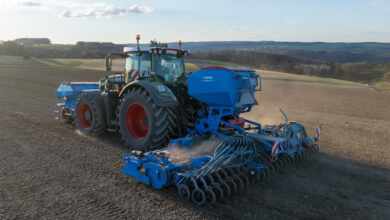 En plus d’être utilisées dans les périodes de déchaumages, les Occitan, Discordon, Crossland (index 50 et 60) et Cover X (index T70) vont donc pouvoir semer à la volée des couverts végétaux (CIPAN, CIVE, dérobés), ainsi que de l’engrais. L’ensemble du système comprend une tête de répartition avec des éclateurs inox (30, 40 ou 50 mm de diamètre en fonction du nombre de sorties), une colonne annelée de 120 mm et des tuyaux souples traité anti-UV et électricité statique. Pour chaque largeur de travail il y a un nombre de sorties précis sur la tête de répartition. Cela permet de ne pas boucher de sorties et donc d’avoir une diffusion homogène sur toute la largeur de la machine. Pour le transport des graines de la trémie à la tête, Grégoire Besson utilise un tuyau rigide en inox pour un bon écoulement des produits et de l’air. Un tuyau souple est ensuite utilisé avant l’arrivée au coude pour protéger la tête des vibrations, en amortissant les chocs.