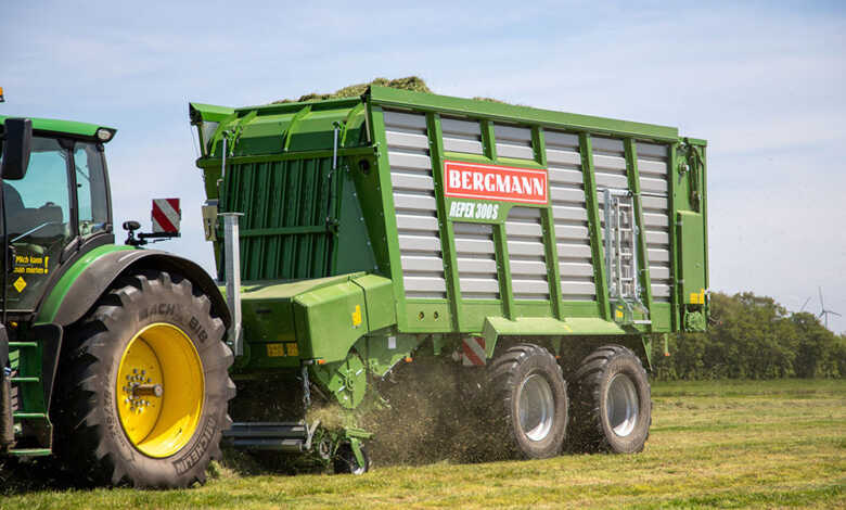 De 750 mm de diamètre, le rotor est muni d’un système de coupe à 41 couteaux produisant des brins de 35 mm. La gamme se décline en 4 modèles, de 29 à 35 m3 DIN avec rouleaux doseurs (version K) ou sans rouleaux doseurs (version S). Elle est pilotée par l’Isobus et profite d’automatismes comme le relevage du pick-up lors des manoeuvres et du blocage de l’essieu suiveur lors des marche arrières. Polyvalentes, ces remorques peuvent servir de remorques à ensilage. Lors de détourages de parcelles, en suivant l’ensileuse, une casquette frontale s’abaisse hydrauliquement pour faciliter le chargement par l’avant. Bergmann propose de gros pneumatiques ( dimensions 710/50R26.5) pour préserver les végétaux et le sol ainsi que différents packs d’éclairage à LED. Ces remorques seront disponibles en quantité limitée dès cette saison.