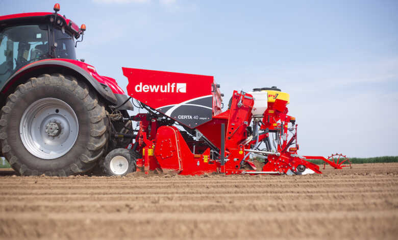 La planteuse à pommes de terre Certa 40 Integral de Dewulf combine un cultivateur rotatif, la planteuse et la butteuse, pour un travail intégral et une plantation sur 4 rangs en un seul passage.