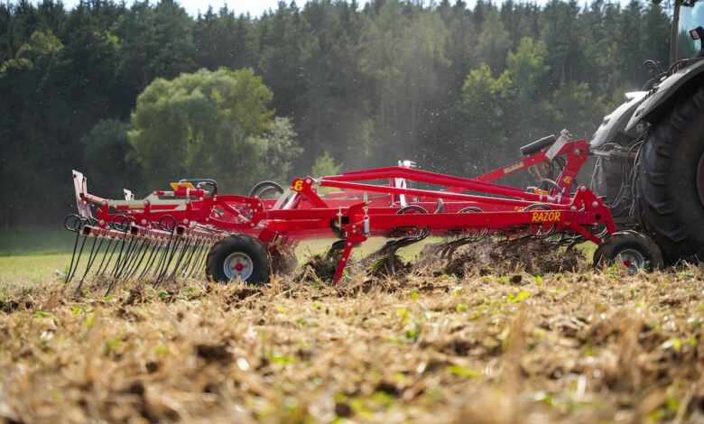 Le réglage entièrement hydraulique permet un ajustement rapide, confortable et précis de l’outil directement depuis la cabine du tracteur. Que ce soit pour des modifications rapides de la profondeur de travail ou un réajustement précis de la herse peigne, le réglage hydraulique garantit une simplicité d’utilisation maximale. Ainsi, le Razor est toujours réglé de manière optimale et peut donc atteindre le meilleur des résultats.