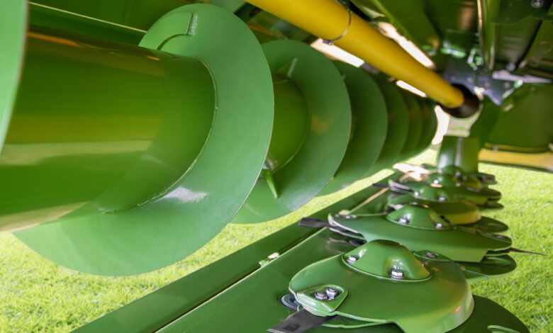 Présenté pour la première fois au salon Agritechnica 2017, ce groupe se distingue par sa vis d’andainage transversale « Big-Swath » de 45 cm de diamètre, connu sur les automoteurs Big M, ce qui le prédestine naturellement pour les installations de biogaz mais également les exploitations, CUMA et ETA qui n’ont pas de tracteur puissant à disposition. Grâce à l’absence de conditionneur et un poids réduit, ce groupe compact mais large (9,45 mètres de largeur de travail avec faucheuse frontale) peut être utilisé sur des tracteurs d’une puissance débutant à 180 chevaux. L’EasyCut B 950 Collect est ainsi à l’aise sur tous les terrains, même peu portants, tels que les marais et les zones naturelles protégées, mais aussi dans les pentes. S’il peut andainer grâce à cette fameuse vis sans fin et des volets de répartition réglables hydrauliquement, ce groupe peut aussi déposer le fourrage à plat, sur toute la largeur. Dans les meilleurs conditions, le rendement peut d’ailleurs atteindre 14 ha/h, selon le parcellaire et le type de fourrage.