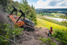 FAE agrandit sa gamme dans le secteur du déminage en équipant l’automoteur sur chenilles radiocommandé PT300 D:MINE du nouveau bras avant multifonctions, compatible avec un grappin manipulateur ou avec un godet de fouille.