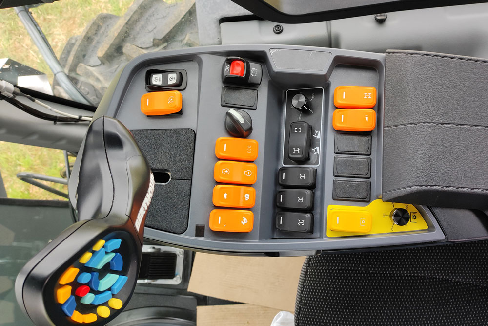 En cabine, un nouvel accoudoir ergonomique intègre une rangée de commandes réorganisées. Autoguidage, régulateur et modes de conduite sont ainsi regroupés pour un accès direct et rapide. L’accoudoir, réglable en longueur, dispose en outre d’un espace dédié pour smartphone et de prises USB A et C. La colonne de conduite réglable sur trois axes permet d’adapter la position de conduite. Un nouvel écran tactile 7 pouces haute définition permet de consulter en un clin d’œil les différents paramètres de l’automoteur tels que le régime moteur, la gestion de la hauteur variable hydraulique, la vitesse d’avancement, le mode de direction etc… Complétons par le siège pneumatique à compensation automatique, qui est ventilé et chauffant.