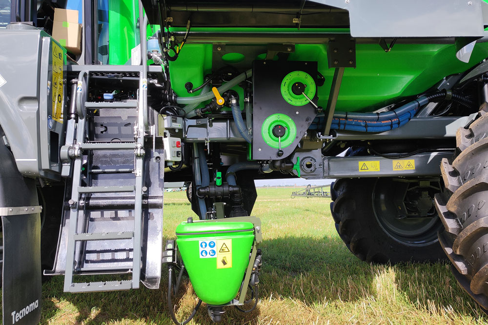 Le Raptor comme le Laser peuvent également être connectés à l’application FieldView de Bayer, qui collecte les données pour les transformer en cartes géolocalisées claires et exploitables. L’OAD offre ainsi la possibilité de suivre les performances d’application, comparer des rendements ou ajuster des traitements. Chose également commune entre les automoteurs Tecnoma et Berthoud, la solution GreenFit proposée en option a été développée par Reichhardt. Elle assure compatibilité totale avec le système d’autoguidage AutoTrac de John Deere et permet d’intégrer facilement les équipements déjà en place, comme le boîtier et l’antenne John Deere.