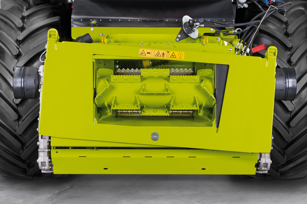 Un adaptateur permet d’accoupler les cueilleurs à maïs Rovio sur les Jaguar 800, Jaguar 900 et Jaguar 900 Terra Trac. La transmission de puissance se fait via un adaptateur avec des pignons et boitiers renforcés. Lors de l’utilisation, le large rouleau d’alimentation avec pales décalées s’adapte au volume de récolte grâce à son montage flottant et assure ainsi un transfert régulier de la récolte vers l’ensileuse. Grâce au système électrique et hydraulique intégré, l’attelage à la Jaguar s’effectue facilement avec le multicoupleur à verrouillage central et le quick coupleur pour la transmission mécanique de la puissance. La compensation latérale intégrée garantit une adaptation au sol optimale grâce à l’Auto Contour. La répartition de la puissance au cueilleur à maïs est assurée par de robustes réducteurs à engrenages droits, avec transmission de la puissance au rouleau d’alimentation avec un entraînement par chaîne 80-HD performant.