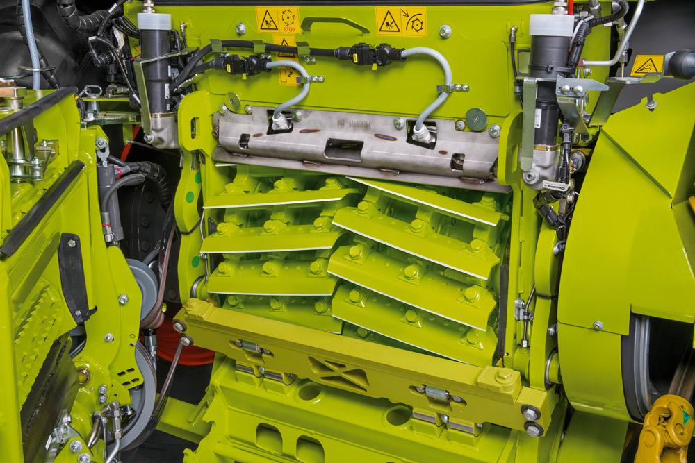 Avec le Cemos Auto Knife Condition, les ensileuses Claas Jaguar série 900 et 900 Terra Trac surveillent l’état d’usure des couteaux sur le rotor et permet ainsi un affûtage adapté aux besoins pour une qualité de coupe toujours optimale. Ce nouveau système fonctionne avec deux capteurs de réluctance qui détectent la géométrie des couteaux à l’aide d’un champ magnétique statique sur toute la largeur des couteaux. Les capteurs sont placés au-dessus du rotor et donc en dehors du flux de récolte. Au champ, le conducteur définit le degré d’affûtage souhaité et la stratégie d’affûtage via le terminal Cebis dans la cabine. Le système informe ensuite le conducteur via le Cebis dès que les couteaux doivent être affûtés. De cette manière, l’affûtage n’est plus effectué à intervalles fixes, mais lorsque cela est réellement nécessaire – c’est-à-dire plus tôt en cas de conditions de récolte abrasives et plus tard en cas de conditions de récolte normales avec une faible usure. La qualité de la coupe du fourrage ainsi que l’efficacité restent durablement élevées, la durée de vie des couteaux étant améliorée. De plus, le système permet une documentation spécifique à la surface de l’usure des couteaux dans Claas Connect. Les entrepreneurs peuvent ainsi justifier les coûts d’usure auprès de leurs clients et améliorer de manière ciblée la chaîne de processus de récolte en amont.