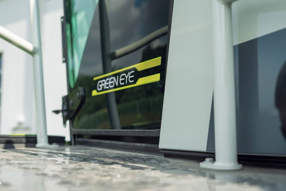En 2026, Claas réintroduit le pack Green Eye sur ses Jaguar 800 et Jaguar 900. D’abord, ces machines profitent de pièces d’usure Premium Line avec durée de vie prolongée, garanties 5 ans et 3.000 heures. Marqué par des stickers spécifiques sur la partie arrière de la machine et sur la porte de cabine, le pack Green Eye opte pour le rotor V-Flex (lire l’article) d’office, plutôt que les V-Classic et V-Max. De plus, le double entraînement variable de l’outil frontal peut être commandé en option afin d’augmenter encore les performances en herbe en combinaison avec le pick-up.