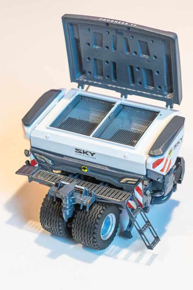 A quelques jours de l’ouverture du salon allemand Agritechnica, PMA32 révèle les premières images de son modèle spécial, une trémie frontale Sky Agriculture Progress TF.