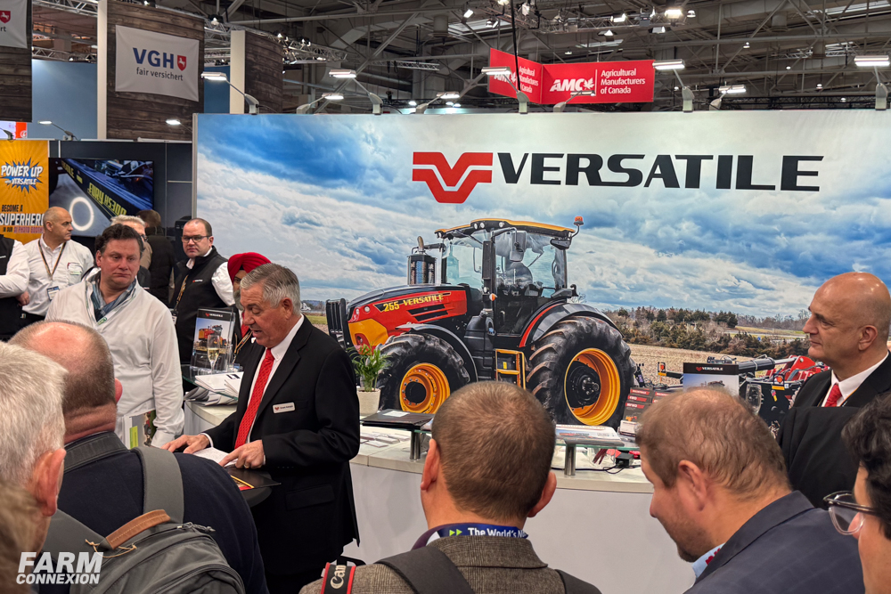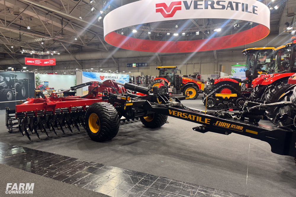 A Agritechnica, pas moins de 6 tracteurs et un déchaumeur à disques ont été acheminés depuis Winnipeg, fief du tractoriste canadien Versatile.