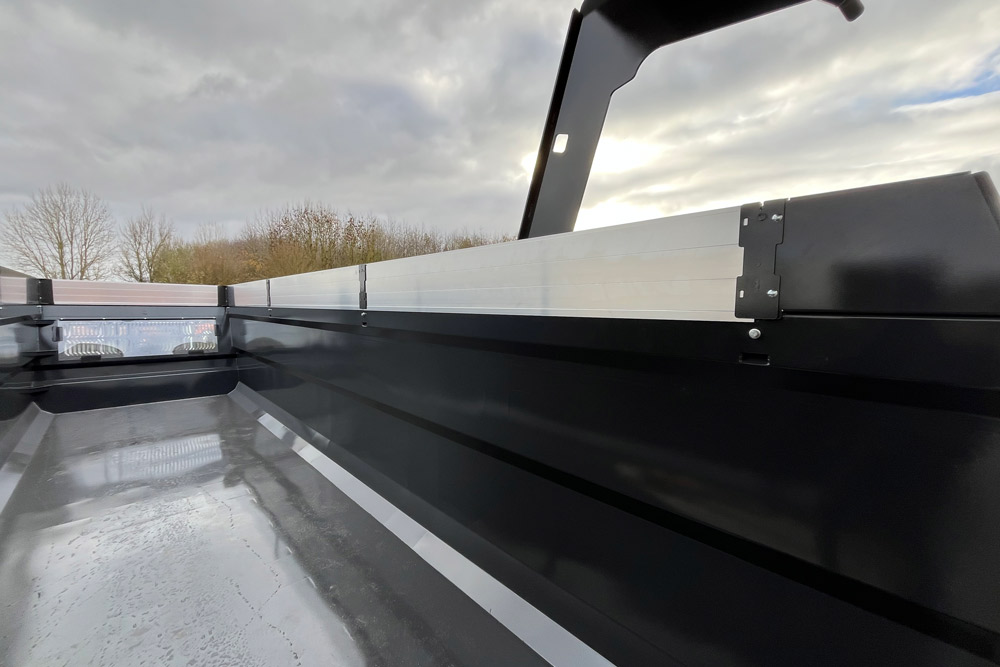 Présentée en édition limitée “Dark Grey” à l’occasion d’Agribex, du 3 au 7 décembre 2025 (Bruxelles, Belgique), cette nouvelle benne proposée en longueur de caisse de 7,6 – 8,5 et 9,2 mètres est homologuée à 32 tonnes en France (disponible avec un PTAC de 34 tonnes pour certains marchés européens) et dispose par conséquent d’un freinage double ligne pneumatique de série.