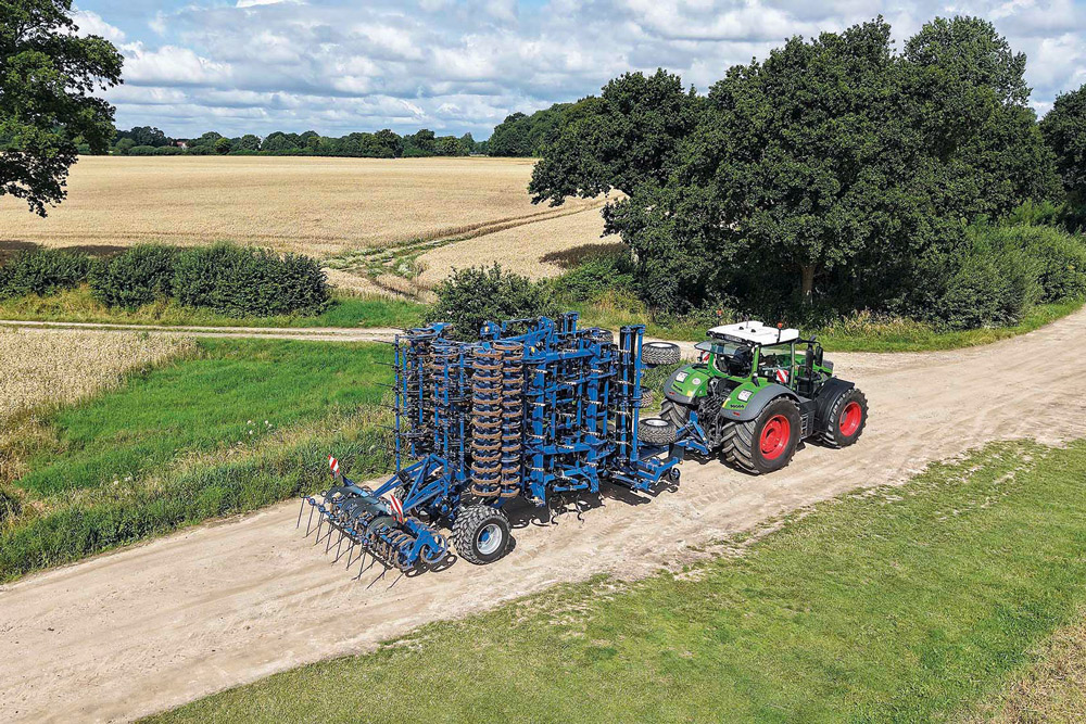 La profondeur de travail gérée en continu depuis la cabine agit sur les 4 ou 6 roues de jauge (380/55-17) associées au double rouleau STS, lui-même complété de deux rangées de herses peignes. L’outil peut bénéficier de lames crossboard et d’un rouleau hacheur pour accroître sa polyvalence.