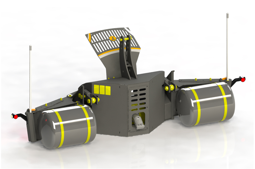 L’idée du TractorBumper Air est de profiter de la masse avant de votre tracteur pour y loger le compresseur avec ses deux cuves de 60 litres, offrant ainsi une capacité de stockage embarquée de 120 litres.