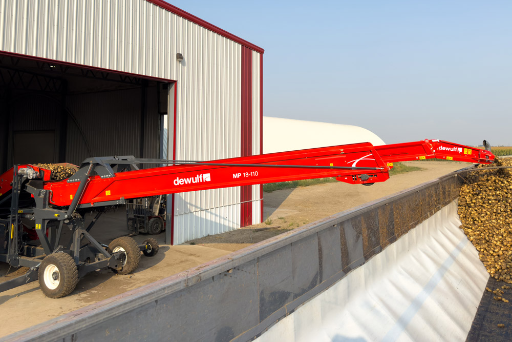 Avec un rayon de braquage de 23 mètres et une longueur de rampe nette de 15,5 mètres, mesurée jusqu’aux roues, le MP 18-110 est bien équipé pour remplir les remorques de l’arrière. En fonction du type de produit, vous pouvez choisir entre un élévateur avec une courroie caoutchoutée ou une courroie à chaîne, disponible en quatre pas. Grâce à la vaste gamme d’options de configuration, la machine peut être facilement adaptée aux exigences de capacité et aux différentes récoltes.