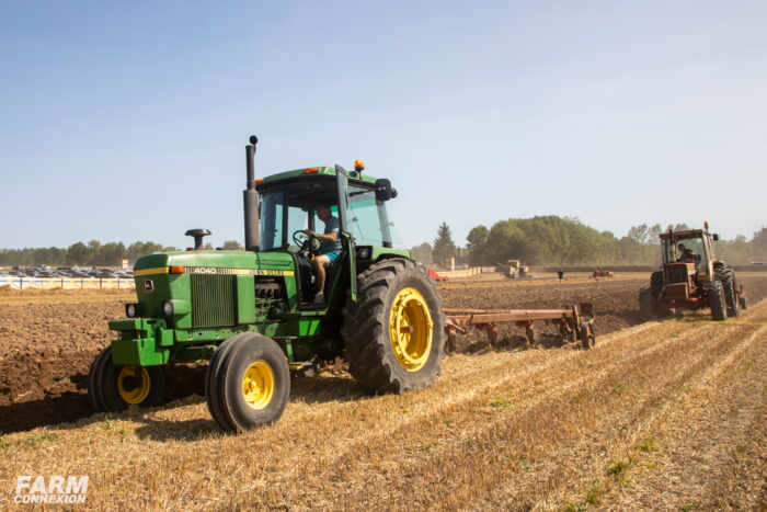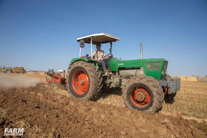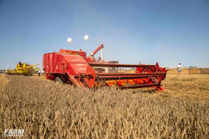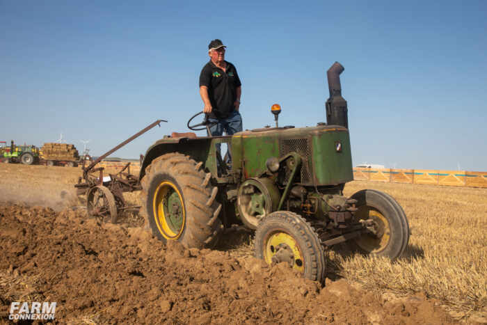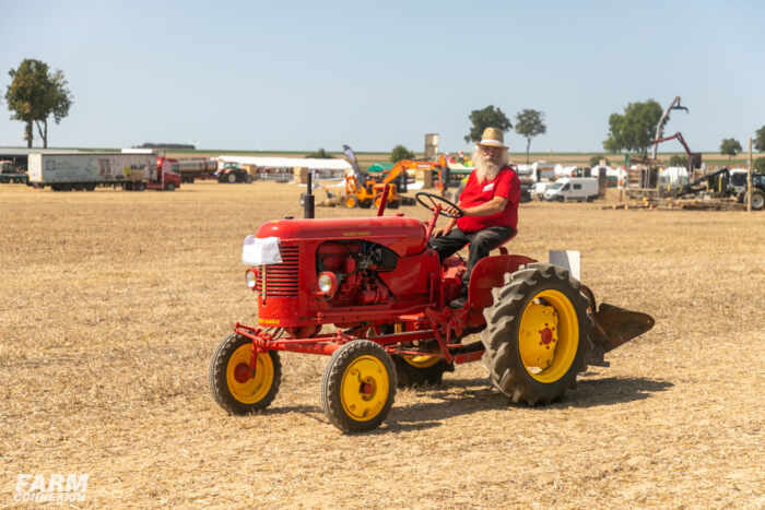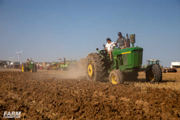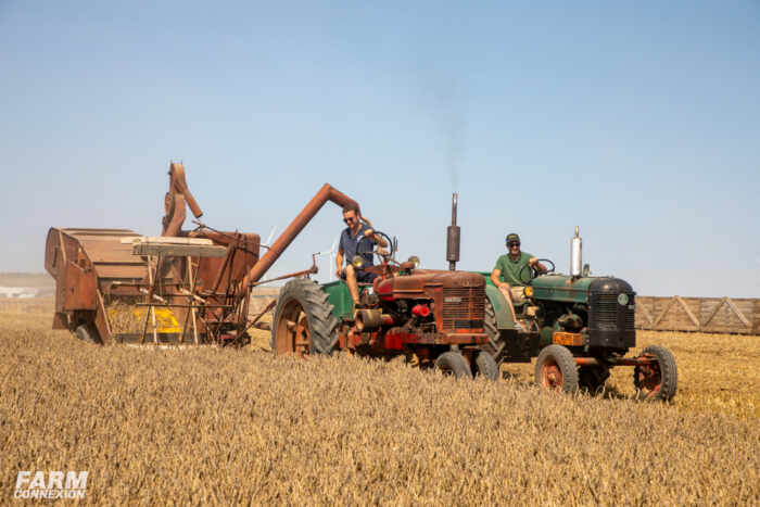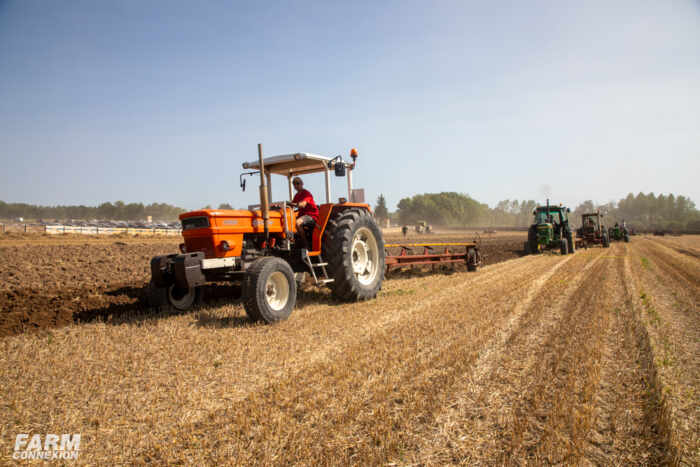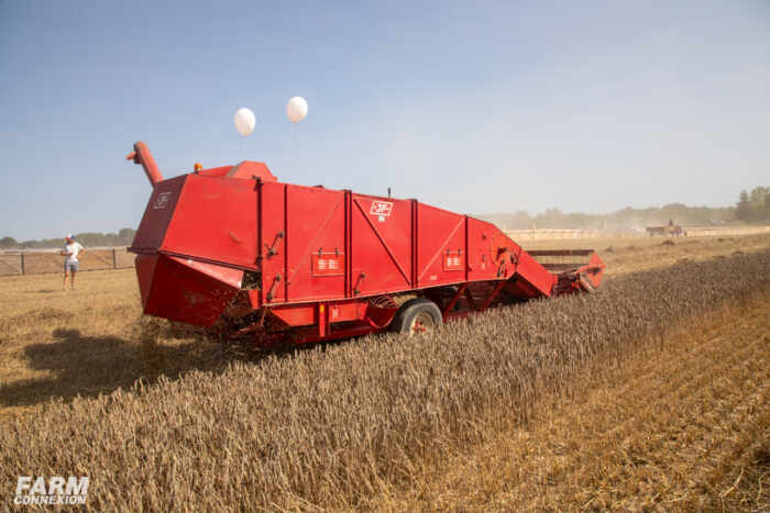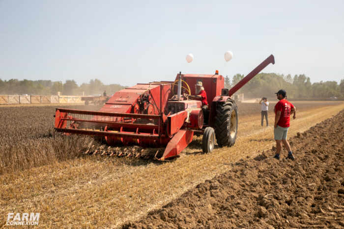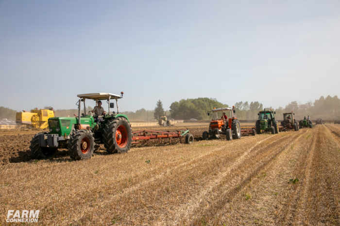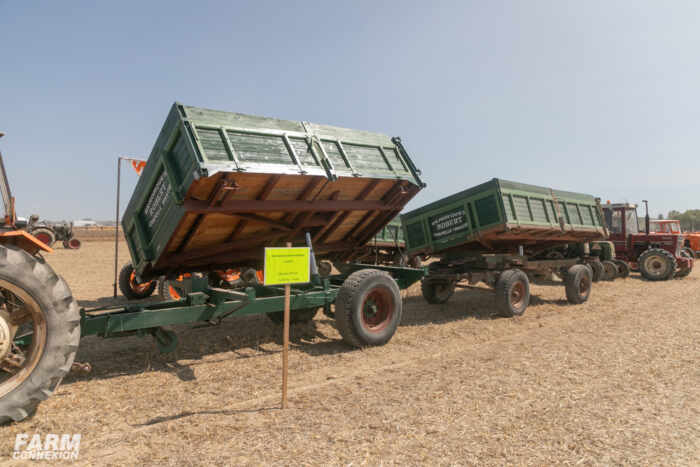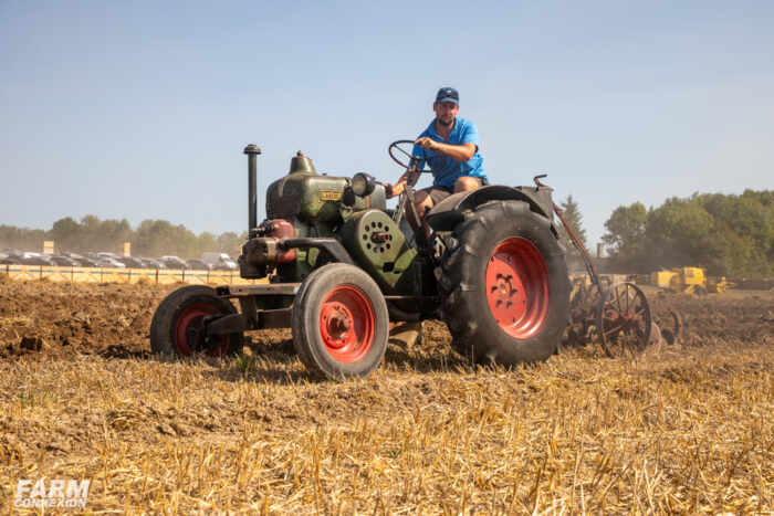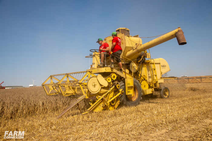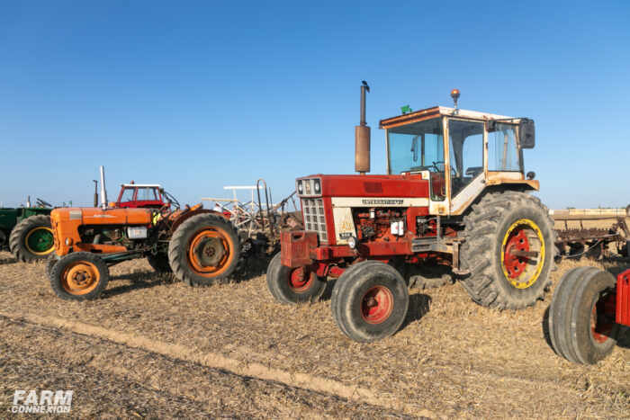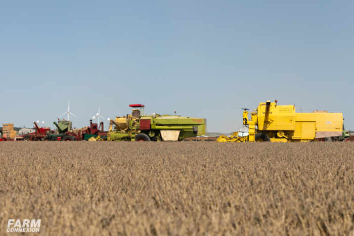 Malgré un petit incident technique rvite maitrisé, l’armada de ces machines produites pour la plupart entre le début des années 50 et la fin des années 60 a pu récolter un blé déjà bien mûr compte tenu de la précocité des moissons cette année. Alors que les gerbes laissées par les moissonneuses lieuses sont expédiées vers une batteuse Merlin à poste fixe, les presses moyenne densité entrent en action et ont rapidement laissé le terrain nu pour que la team des Teuf’teufeurs, bien connue localement pour son intérêt pour les charrues en planche n’intervienne.