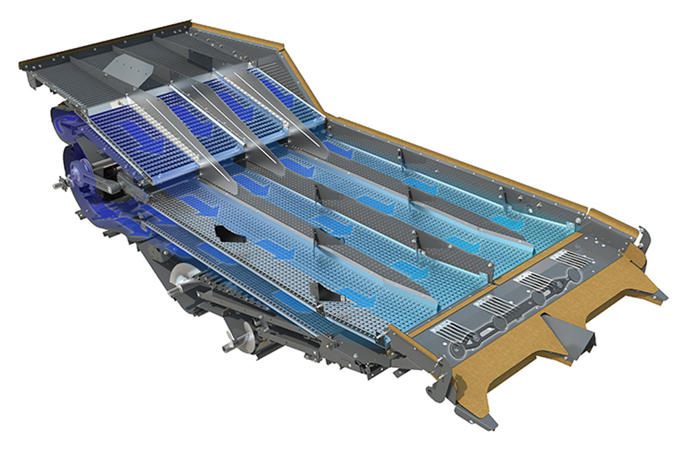 Le cœur du nouveau système de nettoyage Cyclone Plus est constitué d’un toute nouvelle pré-grille d’une surface de nettoyage de 1,0 m² et d’une grille supérieure redessinée. Les deux grilles ont été positionnées de manière à ce que la récolte pré-nettoyée arrive le plus tôt possible sur la grille supérieure et qu’il reste ensuite plus de surface de nettoyage pour séparer les derniers grains de la menue-paille. Ainsi, la capacité de nettoyage augmente et les pertes diminuent en même temps. De plus, le flux d’air a été largement revu. Résultat : la surface de nettoyage ventilée a été élargie et, en combinaison avec l’optimisation du guidage du vent, mieux ventilée. Cela permet d’obtenir la qualité de grain élevée et les faibles pertes connues, même dans des conditions de récolte variables.