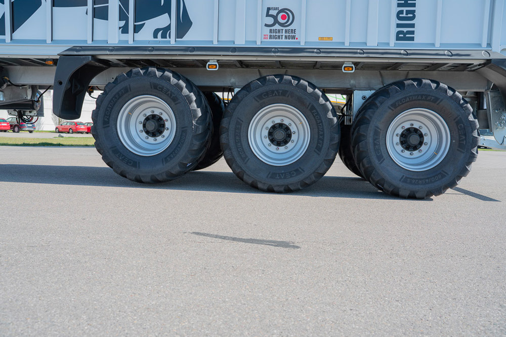 Fliegl Agrartechnik GmbH présente le nouvel essieu relevable HydroLift doté d’une technologie innovante de capteur de charge d’appui pour les remorques tridem.