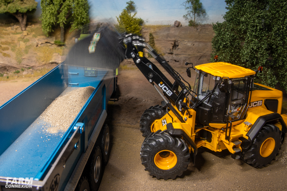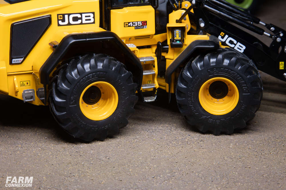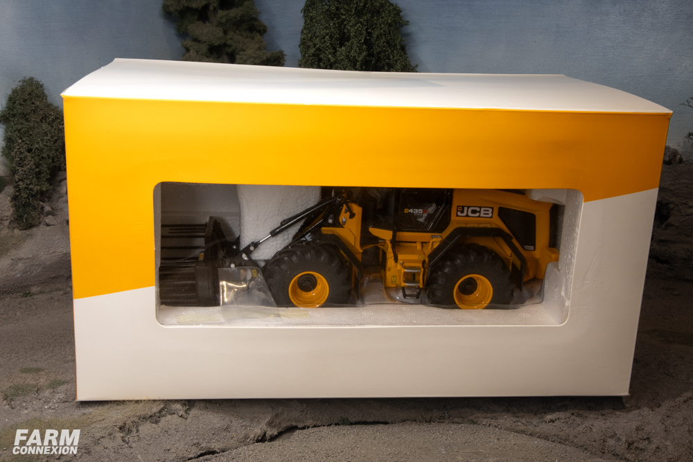Depuis sa création en 2014, AT Collections s’est fait une spécialité d’engins de manutention échelle 1/50 mais également au 1/32, à l’image des Volvo L60H, L25 et plus récemment des Claas Torion 1611 et l’originale, la Liebherr L546 G8. On connait aussi le fabricant néerlandais pour ses pelles sur pneus Atlas 160W & 185W, Liebherr A916 Volvo EWR150E et ECR25 ainsi que de plusieurs équipements agricoles et accessoires de très belle facture. La JCB 435S ne déroge pas à la tradition, de proposer un modèle très détaillé et bien fini. Et forcément, ça se ressent au moment de régler la note. Comptez 129€99 TTC (prix conseillé) pour la version standard et 139€99 TTC la version intégralement noire.