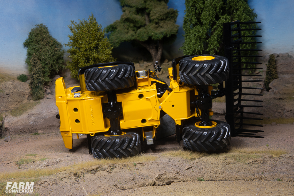 Au premier contact, le modèle séduit par son haut niveau de détails, la finesse des éléments reproduits, notamment des gyrophares, feux et rétroviseurs (attention, fragile!), le pot d’échappement chromé, la présence des flexibles du bras de chargeur et sa peinture homogène. Les peintures claires appliquées comme le blanc ou le jaune apparaissent trop régulièrement par transparence sur plusieurs modèles réduits, à l’image du combiné de semis Ros Alpego. A de tels niveaux de prix, c’est inacceptable. Mais AT Collections a pris soin de sa peinture autant que la tampographie – les logotypes et pictogrammes -, appliquée avec soin.