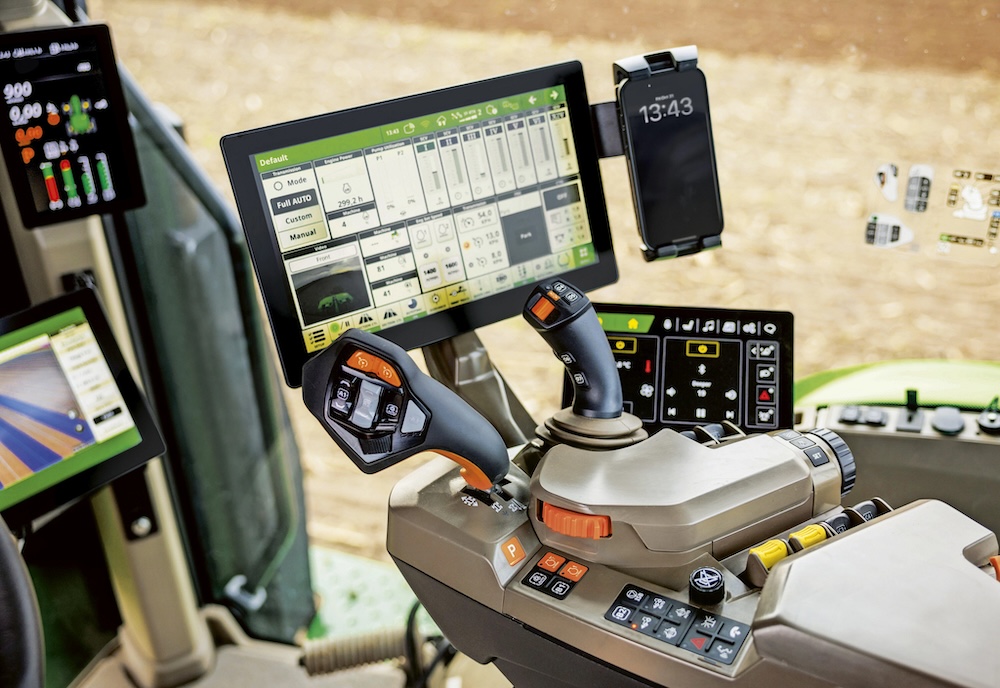 Concernant la cabine CommandView 4, elle est équipée d’un CommandARM redessiné avec écran de commodité intégré, permettant aux opérateurs de mémoriser les réglages du siège et de personnaliser l’environnement de conduite en contrôlant, par exemple, la radio, la climatisation ou le téléphone. De plus, le nouveau CommandARM propose deux options de joystick : le CommandX Plus pour les opérations de base, ou le CommandX Pro avancé pour un contrôle de niveau expert. Les deux offrent une configuration étendue, incluant les nouvelles commandes téléphone et info-divertissement, la nouvelle navigation de l’écran G5Plus et des fonctionnalités Precision Ag enrichies. Les autres améliorations de la cabine comprennent la recharge du téléphone par induction, un essuie-glace avant à 330°, un essuie-glace pour la porte droite, le démarrage par bouton avec protection par code PIN, ains que la fermeture de porte assistée électriquement.