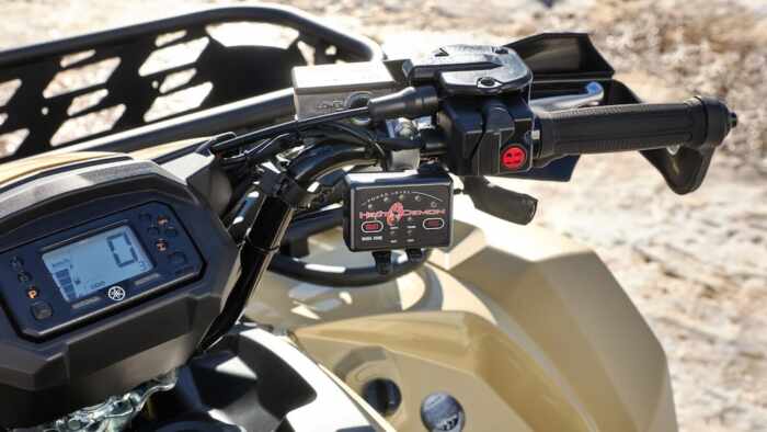 Le Kodiak 450 Kiwami est propulsé par un moteur à injection électronique (EFI) de 421 cm³ associé à la transmission à variation continue Ultramatic de Yamaha avec modes « on-Command » 2×4 – 4×4 et blocage de différentiel. Les amortisseurs à longue course KYB et les larges pneus tout-terrain de 25 pouces assurent confort et adhérence.