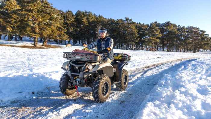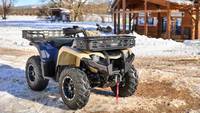 Fleuron de la gamme, le Kodiak 700 Kiwami peut transporter jusqu’à 140 kg et tracter 600 kg. Il est équipé d’un moteur MK II de 686 cm³ à simple arbre à cames en tête, associé à la transmission à variation continue Ultramatic, au système On-Command 4×4 avec blocage de différentiel et à la direction électrique assistée. Les paniers métalliques avant et arrière améliorés offrent une commodité supplémentaire, tandis que la suspension KYB, les freins à disque et le treuil WARN sont de série.