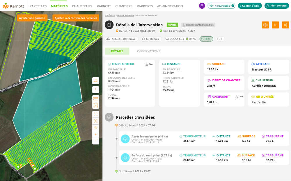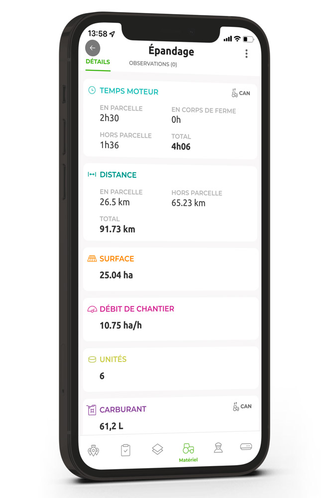La plateforme associe automatiquement les informations liées à la consommation de GNR à l’ensemble des paramètres de l’intervention, qu’il s’agisse des surfaces travaillées, des temps d’intervention, des distances parcourues ou encore des outils