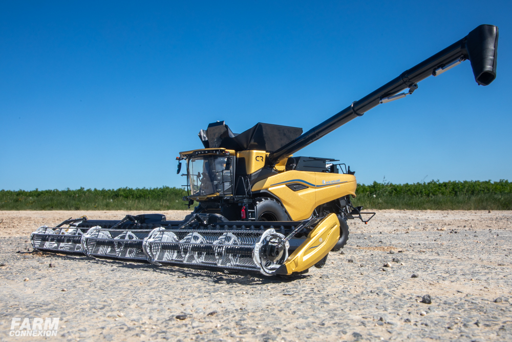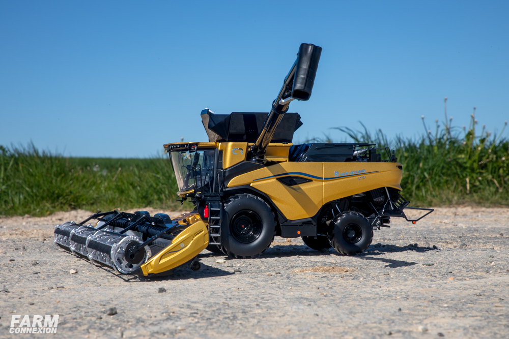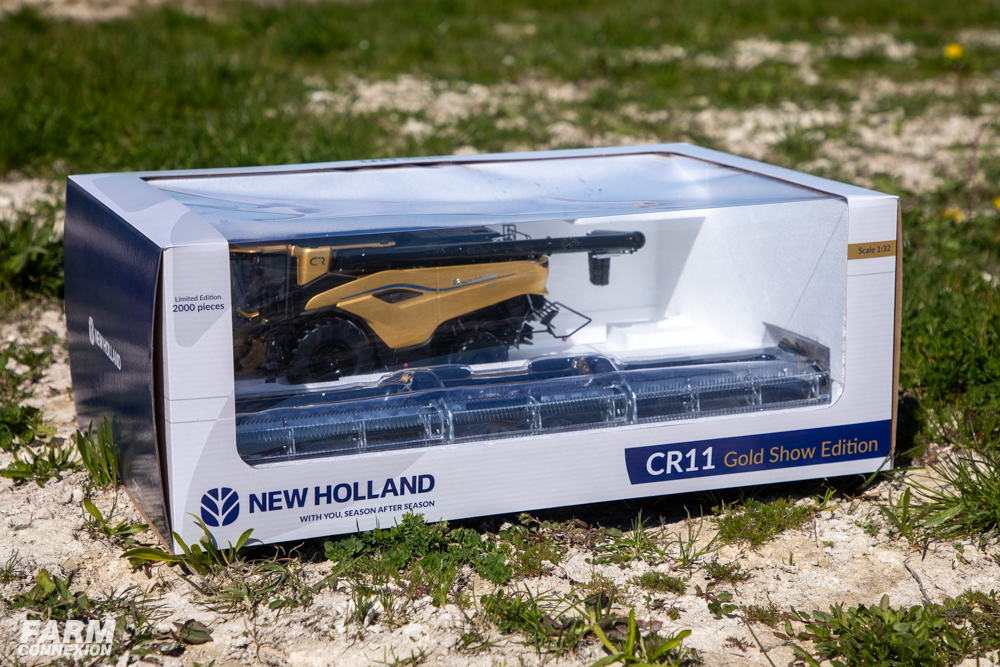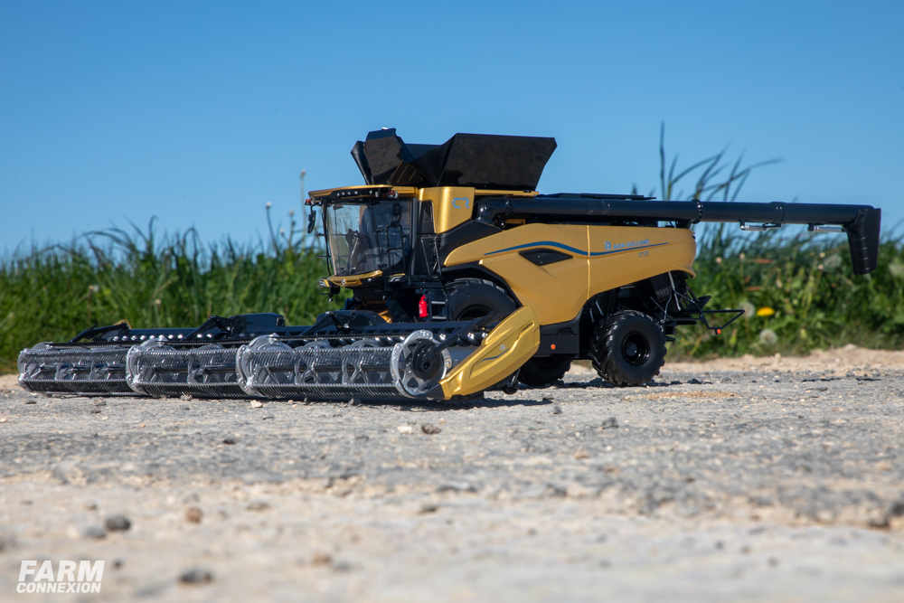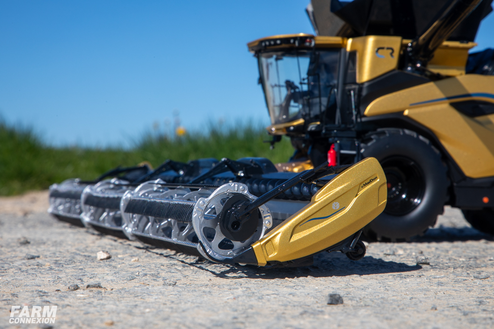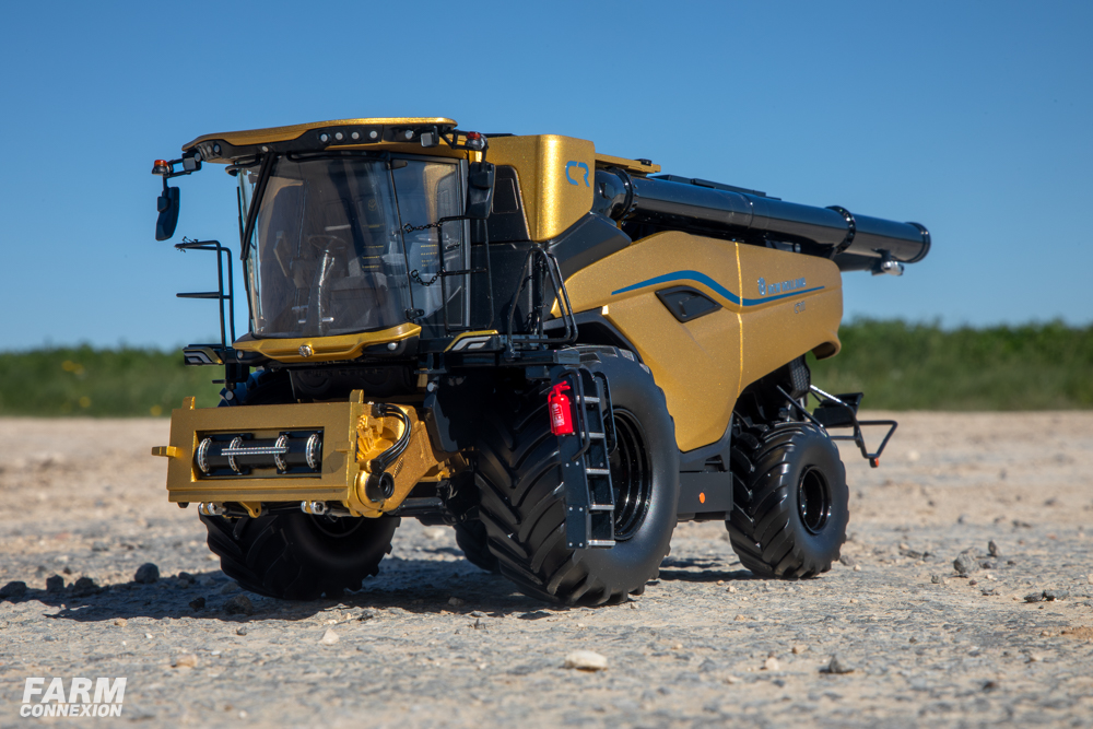 Surprise grandeur nature lors du salon Agritechnica 2023, la toute nouvelle CR11 est révélée en avant-première mondiale dans une version cuivrée-or du plus bel effet. Annoncée comme l’une des machines les plus performantes du marché, avec une cinématique redessinée et des organes de battage, de séparation et surtout de nettoyage redimensionnés, elle devra patienter deux ans avant d’être miniaturisée à l’échelle 1/32ème, d’abord chez ERTL Britains dans un coloris jaune plus conventionnel, puis chez le français Universal Hobbies.