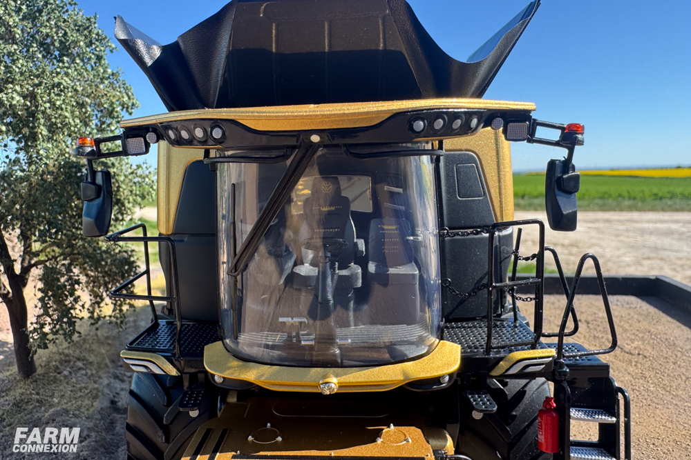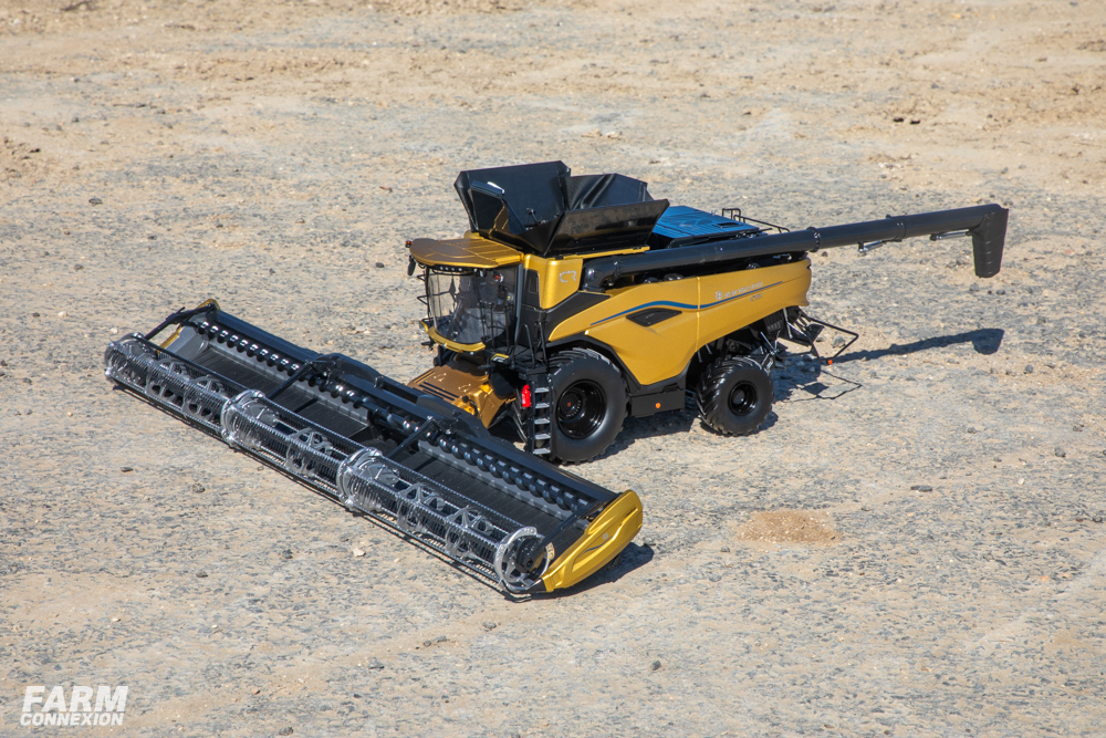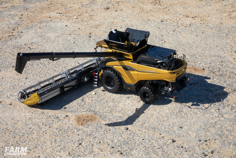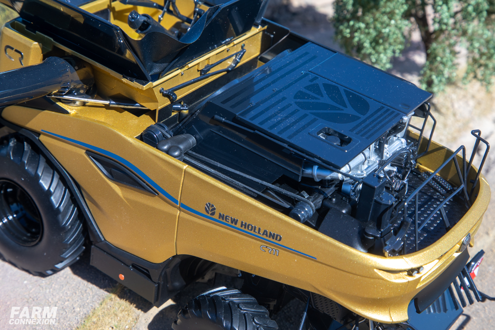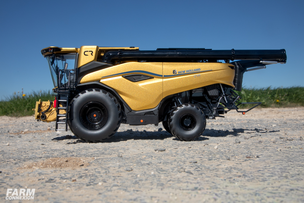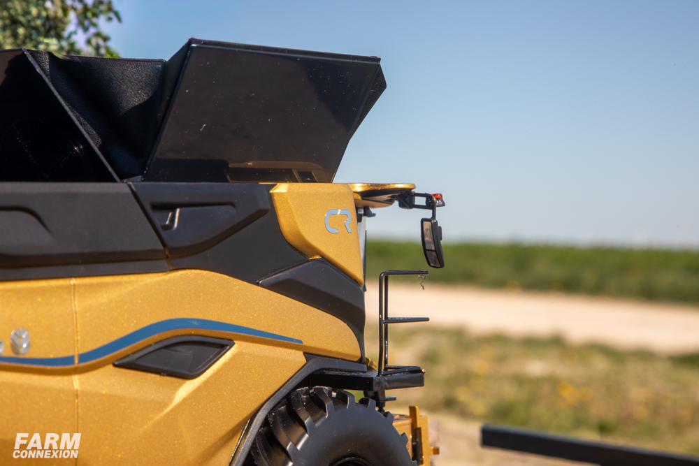 Surprise grandeur nature lors du salon Agritechnica 2023, la toute nouvelle CR11 est révélée en avant-première mondiale dans une version cuivrée-or du plus bel effet. Annoncée comme l’une des machines les plus performantes du marché, avec une cinématique redessinée et des organes de battage, de séparation et surtout de nettoyage redimensionnés, elle devra patienter deux ans avant d’être miniaturisée à l’échelle 1/32ème, d’abord chez ERTL Britains dans un coloris jaune plus conventionnel, puis chez le français Universal Hobbies.