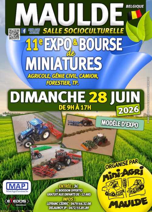 | 08/02/26 | Exposition de miniatures agricoles « Pévèle Agri Mini » | Genech (59) – 503 rue de la Libération – Salle des sports | ![]() |